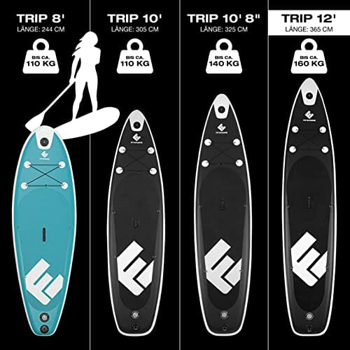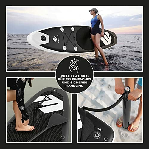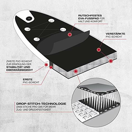 • Stabilność: 15 cm grubości deski zapewnia stabilność podczas przechylania się również w niespokojnych wodach, uniwersalny kształt, wyjątkowo stabilna podczas przechylania, nadaje się również dla początkujących, wytrzymała obróbka Double Stitch