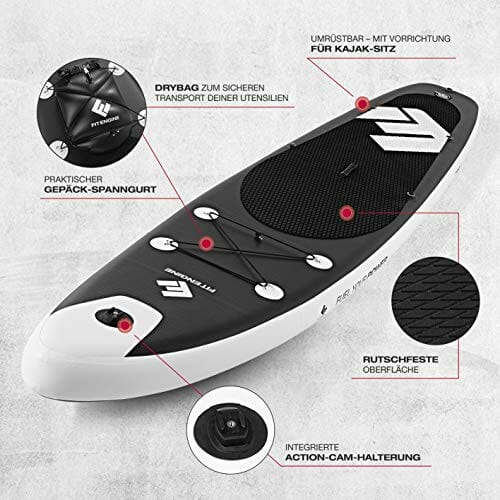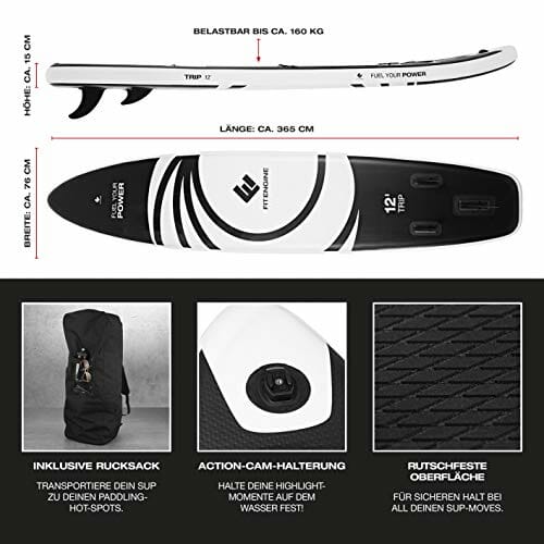FitEngine Kompletny zestaw SUP SUP z uchwytem na kamerę sportową, nadmuchiwaną torbą, wodoszczelne etui na telefon komórkowy, 365 cm (12″)