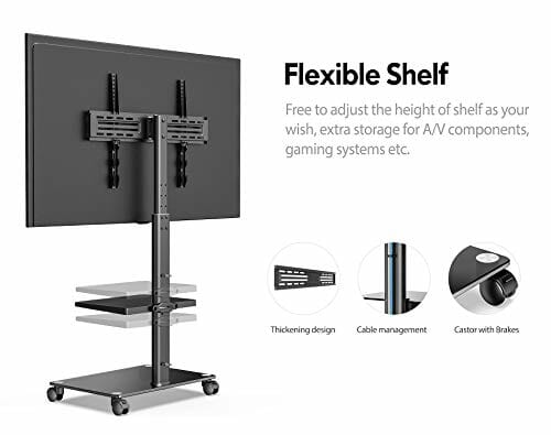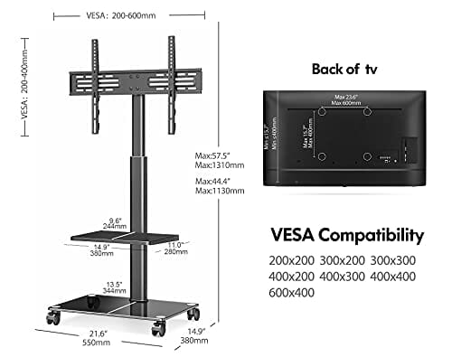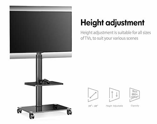• Uniwersalny stojak podłogowy do telewizora na kółkach pomieści większość telewizorów 32 37 40 42 43 49 50 55 58 60″. Maks. Obciążenie 30 kg
