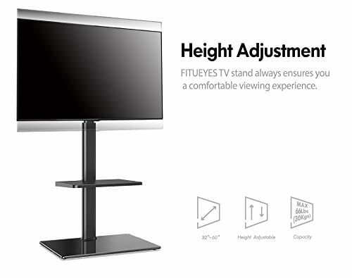 Fitueyes stojak na telewizor, 2 półki, na ekran o przekątnej 82-152 cm, obrotowy uchwyt 70°, 8 regulowanych wysokości, zarządzanie kablami maks. VESA