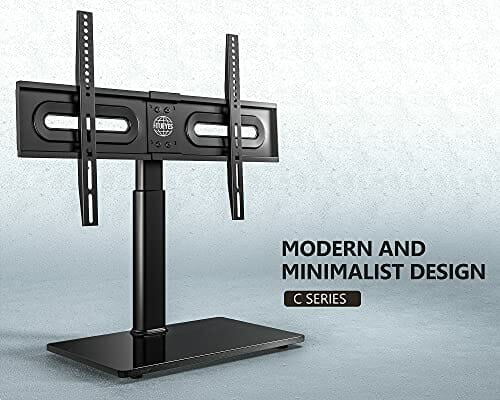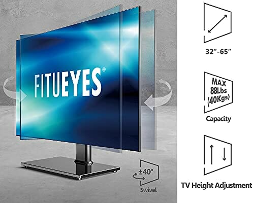 FITUEYES Stolik pod telewizor stołowy o średnicy od 32 do 65 cali, obrotowy 80°, 4 regulowane, wysokość, uchwyt do bazy telewizora, zarządzanie kablami, maks. 40 kg, VESA 600 x 400 mm, czarny TT105202 GB