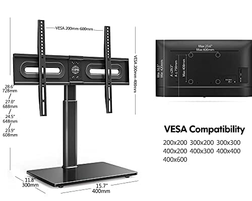 • Kompatybilność – pasuje do większości telewizorów o przekątnej 32–65 cali o wadze mniejszej niż 40 kg. Pasuje do VESA (wzór otworu montażowego: 200 x 100 mm (8 x 4 cale)/200 x 200 mm (8 x 8 cali) / 300 x 300 mm (12 x 12 cali) / 400 x 300 mm (16 x 12 cali)/400 mm (16 x 400 mm (16 x 4 mm (16 x 4 x 4 mm (16 x 40000 mm (16 x 4 x 4 mm) X16″) / 600 x 200 mm i 600 x 400 mm. UWAGA: proszę sprawdzić przed zakupem