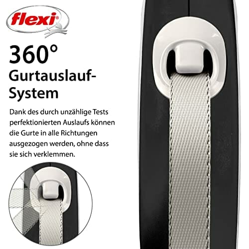 Flexi Nowa komfortowa taśma szara i czarna duża 8 m chowana smycz dla psa/smycz dla psów do 50 kg