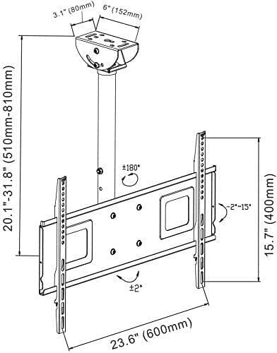 • Uchwyt sufitowy do telewizora oferuje szeroki zakres regulacji wysokości od -20 do 32 stopni, aby zaspokoić różne potrzeby oglądania.