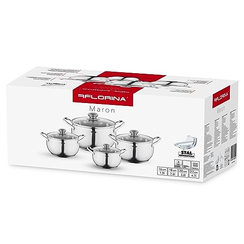 FLORINA Maron zestaw garnków z wysokiej jakości stali to kompletny zestaw garnków, który został stworzony z myślą o zapewnieniu użytkownikom najwyższej jakości i wydajności w kuchni. Ten zestaw garnków jest niezwykle wszechstronny i idealny do codziennego gotowania, a także do specjalnych okazji.