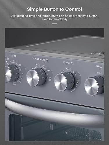 - 🍗 【Einfach zu Verwenden】 Alle Vorgänge sind einfach mechanisch aufgebaut. Es müssen lediglich vier tasten gedreht werden, um die zeit (60-minuten-timer), die temperatur (80 ℃ – 230 ℃), die funktion und die lüftergeschwindigkeit einzustellen. Mechanische konstruktionen sind langlebiger und auch für ältere menschen einfacher zu bedienen.