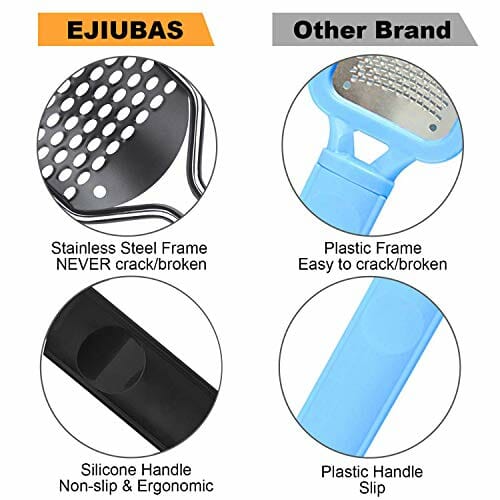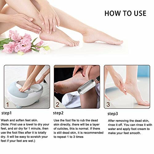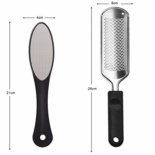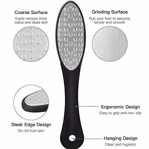 • Regularne stosowanie pilnika do stóp może pomóc utrzymać stopy gładkie i przyjemne, a także może zmniejszyć dyskomfort spowodowany ponadwymiarowymi modzeczkami