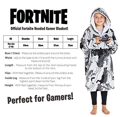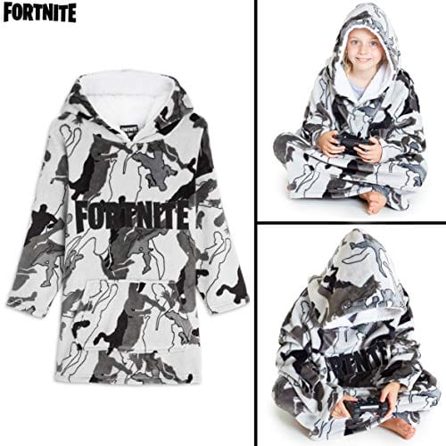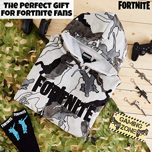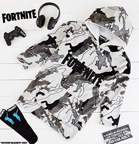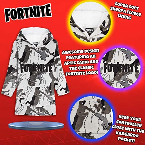Ten przenośny koc z rękawami jest nie tylko praktyczny, ale także stylowy. Z wyraźnym logo Fortnite na przodzie, bluza z kapturem jest doskonałym wyborem dla prawdziwych fanów gry.