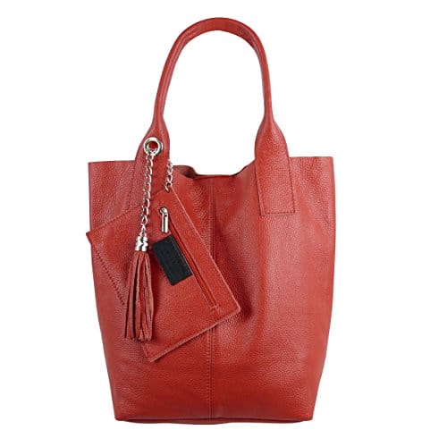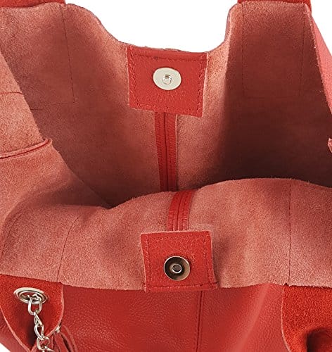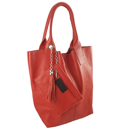 - Artikelname: Freyday Damen Echtleder Shopper mit Schmucktasche in vielen Farben Schultertasche Henkeltasche Handtasche Metallic look S03 (Rot)