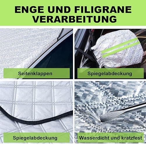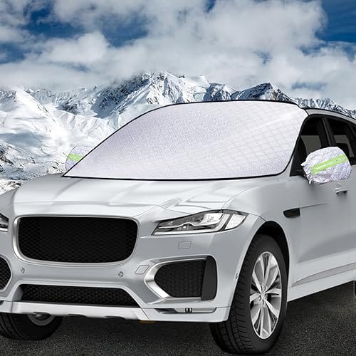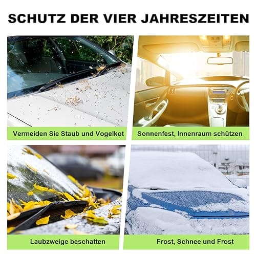 • 【Wysokiej jakości materiały】Osłona przedniej szyby składa się z 4 warstw materiałów kompozytowych, które charakteryzują się odpornością na rozerwanie, odpornością na ciepło, wysoką wytrzymałością i trwałością. Pogrubiona osłona przedniej szyby jest wystarczająco wytrzymała, aby chronić samochód przed uszkodzeniami o każdej porze roku.
