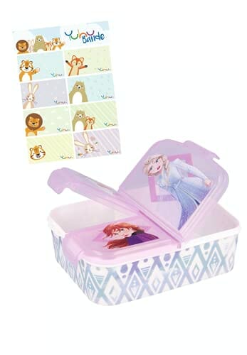 Kraina lodu II – Frozen 2 Pudełko na przekąski śniadaniowe dla dzieci z 3 przegródkami i naklejkami z imionami