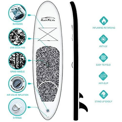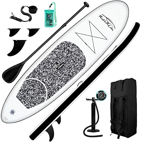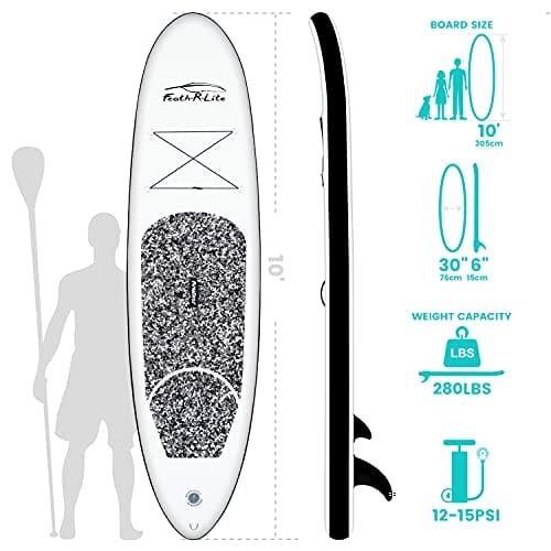 FunWater Nadmuchiwana deska surfingowa SUP, kompletny zestaw akcesoriów do paddleboardingu, regulowane wiosło, pompka, plecak podróżny, smycz, wodoszczelna torba, deska do wiosłowania dla dorosłych