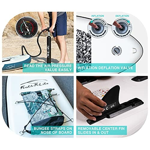 ✅ 【Bogate akcesoria】Zestaw SUP: 【Bogate akcesoria】Zestaw SUP obejmuje: 1 x nadmuchiwana deska do wiosłowania, 1 x wiosło SUP, 3 x płetwy, 1 x pompka, 1 x smycz, 1 x plecak. Wszystko przy sobie na następną przygodę z paddleboardingiem