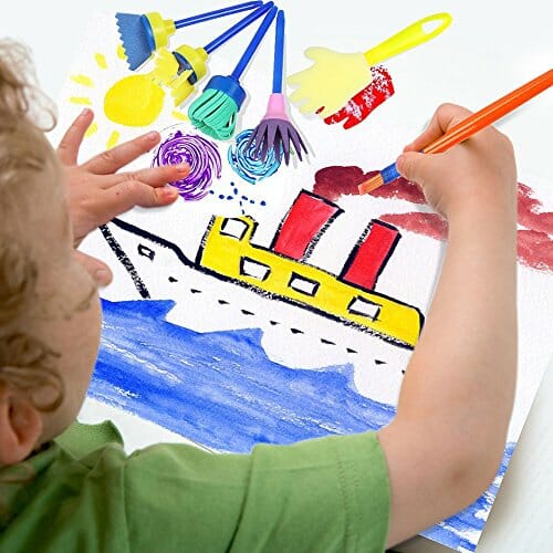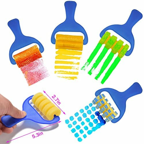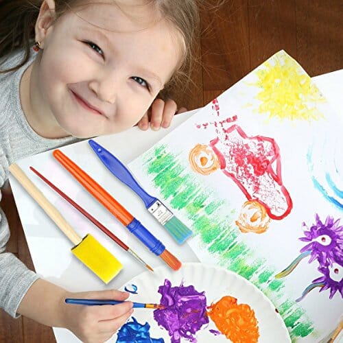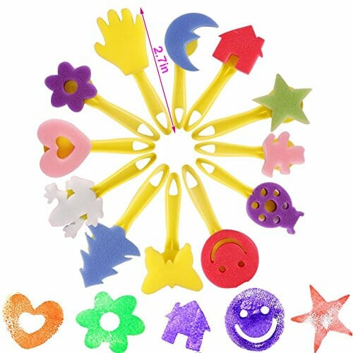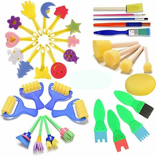 FUQUN – Zestaw 35 sztuk pędzli z gąbką dla dzieci: narzędzia malarskie, gąbka do malowania, pędzle do stempli, narzędzia do wczesnej edukacji dzieci