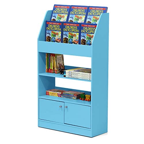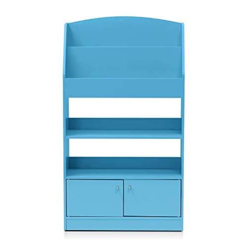 Furinno FR16119LB regał na książki, jasnoniebieski, 3-poziomowy, z półką na czasopisma i szafką