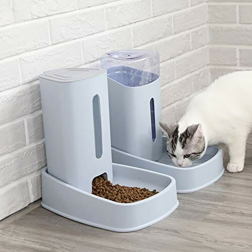 Automat do karmy dla kotów, dozownik karmy i dozownik wody dla psów, zwierząt domowych, automatyczna fontanna do picia z filtrem, zestaw startowy dla szczeniaków, kociąt, 3,8 l x 2 (nowy)
