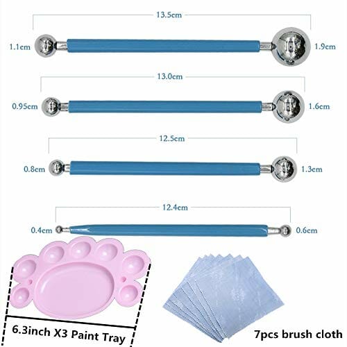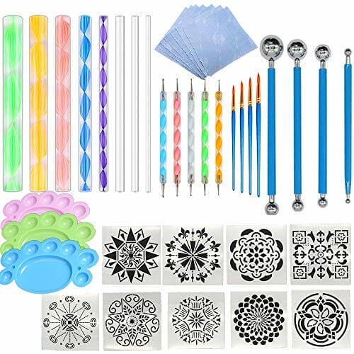 ✅ Cenny zestaw narzędzi: Cenny zestaw narzędzi do wykonywania mandali: 40 sztuk narzędzi do robienia kropek, w tym 8 akrylowych prętów, 5 dwustronnych akrylowych długopisów, 4 pędzle do malowania, 4 niebieskie gumowe rysiki, 9 szablonów mandala, 3 tacki do malowania i 7 ściereczek do pędzli. Dostępna jest pełna gama zestawó