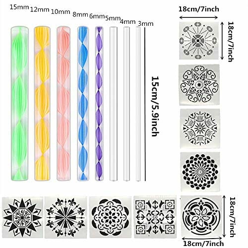 ✅ Szczegóły dot. narzędzi:: Szczegóły dot. narzędzi: 8-częściowy zestaw akrylowych prętów o średnicy od 3 mm do 19 mm (3, 4, 5, 6, 8, 10, 12 i 15 mm) do malowania skalnego mandali lub sztuki na płótnie/4 szt. niebieski gumowy rysik kulkowy pomaga ekspertom rysować większe koła. Średnica: 6, 13, 16, 19 mm i 4,8, 9,5, 11 mm. 5 s