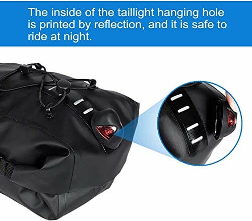 • Odblaskowa taśma klejąca i specjalna konstrukcja światła tylnego: plecak na siodełko rowerowe ma odblaskowe taśmy, dzięki czemu można zauważyć ludzi za Tobą. Posiada również pozycję do zainstalowania tylnego światła – podwójnie przyjazna konstrukcja dla Twojego bezpieczeństwa.