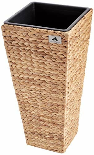 GARTENFREUDE Donica na rośliny, donica na kwiaty, doniczka na kwiaty itp. z hiacyntem wodnym 28 x 28 x 60 cm, w zestawie wodoodporny wkład z tworzywa sztucznego, kolor naturalny