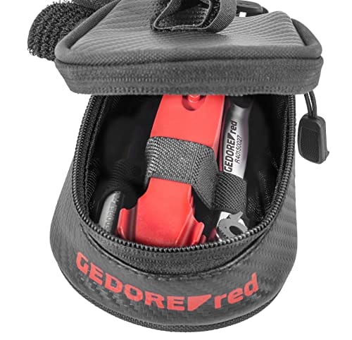 GEDORE Red R21702013 zestaw narzędzi rowerowych w podróży, 13-częściowy, wymiana opon, bity, grzechotka, adapter, wkładka do kluczy nasadowych, zestaw naprawczy z torbą podsiodłową, R21702013,