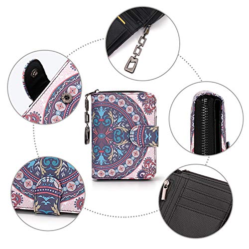 Portmonetka Damska Mała w Krótkim Formacie, Portfel Damski z Kwiatami i Wzorem Kwiatowym w Stylu Mandali i Etno, zatrzaskiem i Wieloma Przegródkami