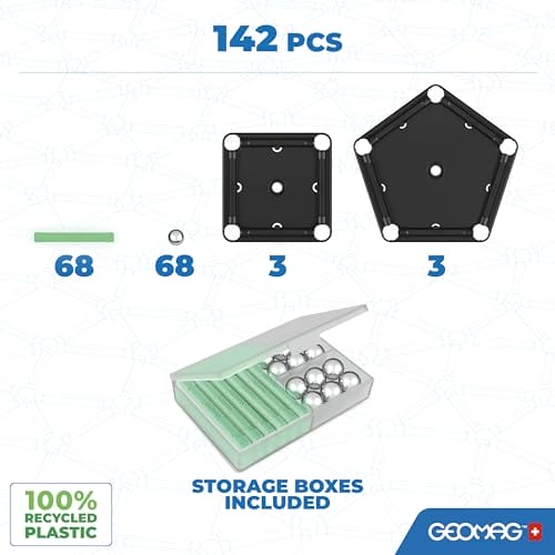 • Pręty magnetyczne wykonane są w 100% z tworzyw sztucznych pochodzących z recyklingu, aby zapewnić szanowaną grę planety