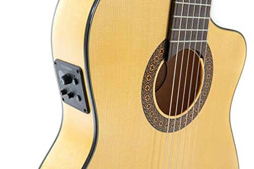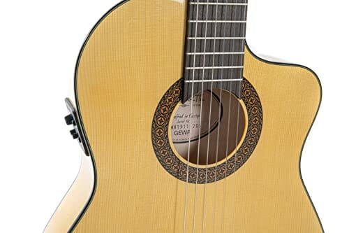 • handliche 70mm flache Zargen, Fishman Steg-Tonabnehmer und Clásica II Vorverstärker mit Stimmgerät