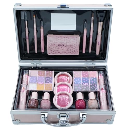 Różowa walizka do makijażu Gio – szminki, cienie, różyczki, lakiery