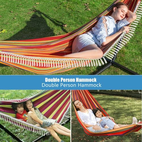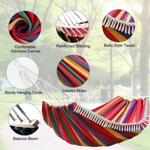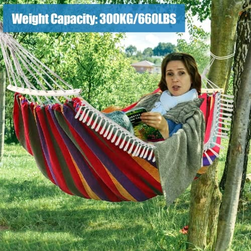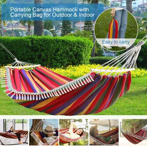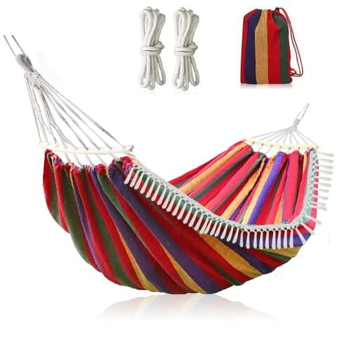 Gohytal Hamak ogrodowy, Hamak bawełniany na zewnątrz, hamak kempingowy, przenośny hamak podwójny do Camping Podróży Ogród Plaża, maksymalna pojemność obciążenia 300 kg, 280*150 cm (czerwony)