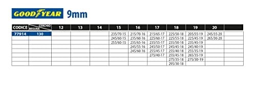 Goodyear Catene da Neve „G9”, Catene Neve 9 mm, Catene Auto Omologate TUV e GS Onorm, Misura 130, Tabella Applicativa per Misure Pneumatici