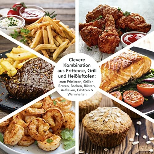 ✅ Wielofunkcyjność: Poznaj sprytne: Wielofunkcyjność: Poznaj sprytne połączenie pieca na gorące powietrze, grilla i frytkownicy, które oferuje wiele możliwości przygotowania i tym samym zrewolucjonizuje Twoją kuchnię