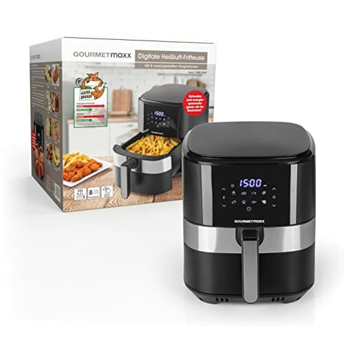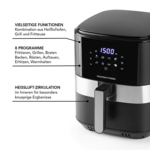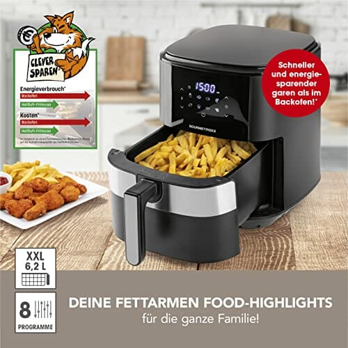 GOURMETmaxx Digitale Heißluft-Fritteuse XL 6,2 Liter | Kombination aus Heißluftofen, Grill und Fritteuse | 60 Min Timer, automatische Abschaltung, 8 Programme | Für besonders knusprige Ergebnisse