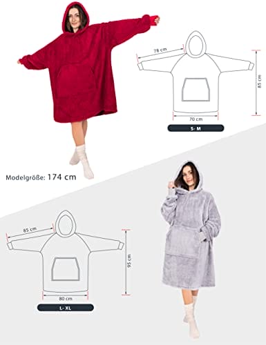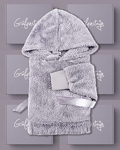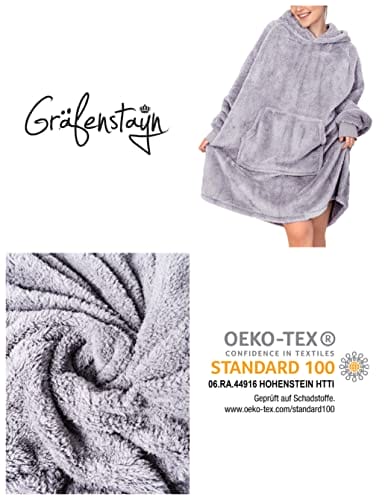 Gräfenstayn Puszysta bluza z kapturem Sherpa koc z rękawami i kapturem Öko-Tex Standard 100 – Przytulny i ciepły sweter dla kobiet i mężczyzn (L – XL szary)