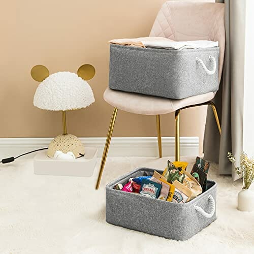 Kosz do przechowywania, mały, materiałowy, składany, 2 sztuki, z uchwytami, organizer na ubrania, zabawki, do sypialni, (mały, szary)