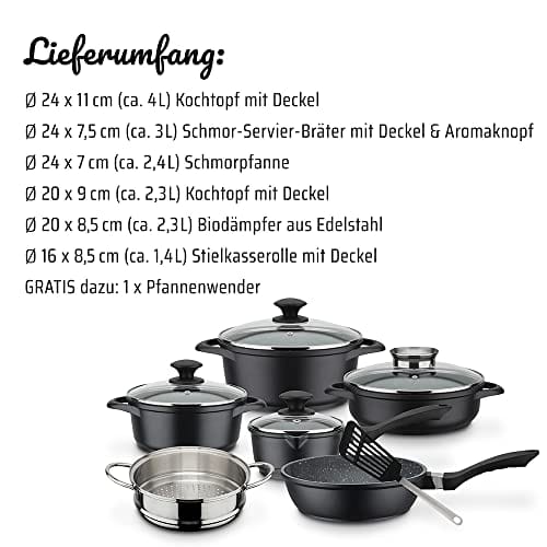 GSW Gourmet Granit Zestaw Garnków i Patelni Aluminium Szkło