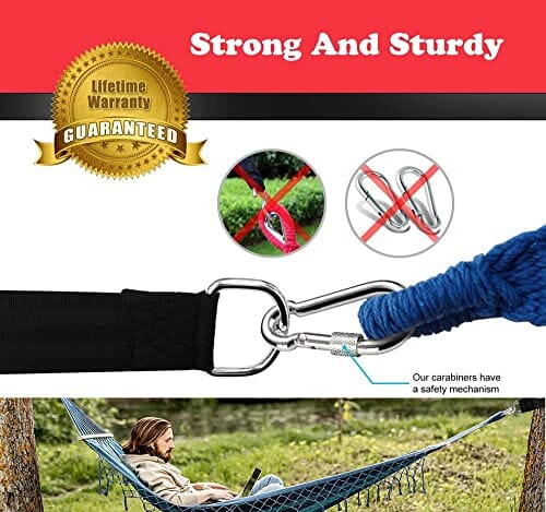 Mocowanie do huśtawki, hamak, zestaw do mocowania, do zawieszenia, fotel wiszący, mocowanie z 2 karabińczykami do dużych obciążeń i pierścieniami D, wytrzymuje do 550 kg, z torbą do