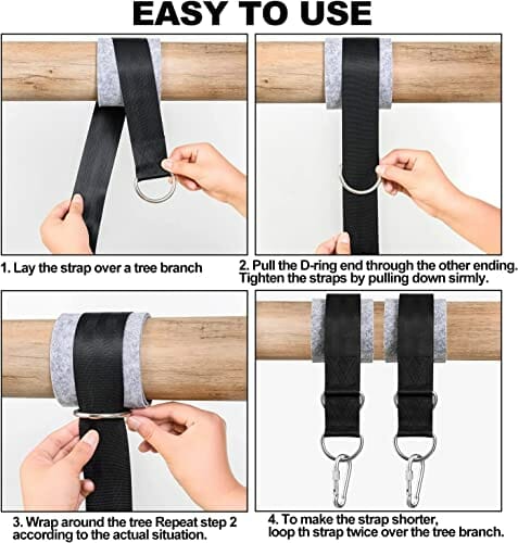 ✅ 【100% zadowolenia】 2: 【100% zadowolenia】 2 opakowania mat ochronnych na drzewo; 2 karabińczyki z nakrętką; 2 długie ramiączka (150 cm) z pierścieniami D, 1 torba do przechowywania. Jeśli nie jesteś zadowolony z produktu, obiecujemy pełny zwrot pieniędzy lub nowy zamiennik. Twoje zadowolenie jest naszym najwyższym prioryt