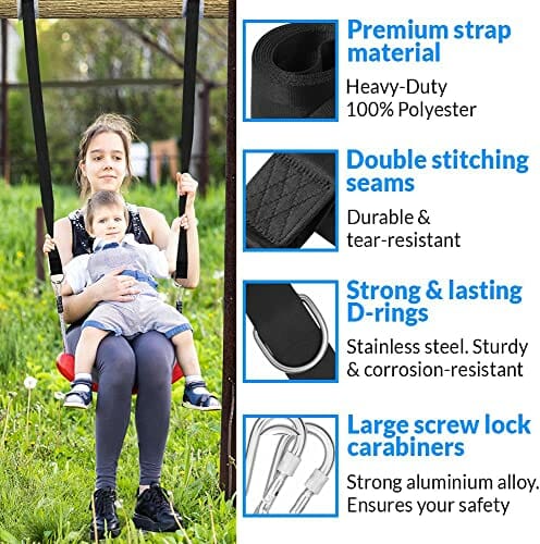 ✅ Pasuje do wszystkich: Pasuje do wszystkich typów huśtawek – dwie taśmy do huśtawek choinkowych są fantastyczne. Otrzymasz dwie taśmy do klasycznych huśtawek na drzewo, huśtawek ogrodowych, huśtawek dla małych dzieci, huśtawek na werandę i taras, pojedynczy pas do huśtawek spinningowych, huśtawek opon, huśtawek tarczowych