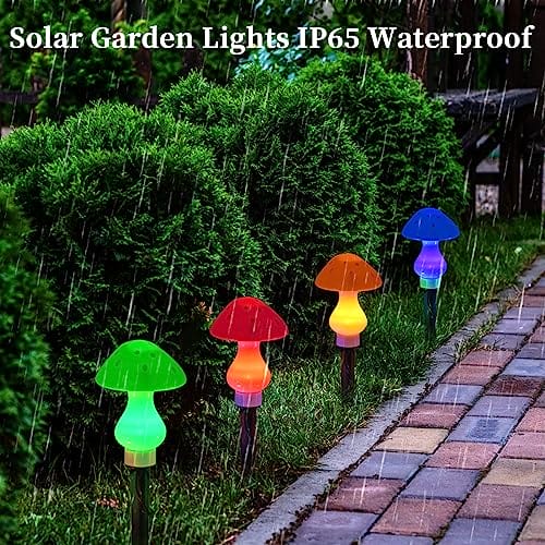 • Wodoszczelność IP65 i łatwa obsługa – te lampy solarne do ogrodu są wykonane z wodoodpornego materiału IP65 i są wystarczająco trwałe, aby wytrzymać wiatr i śnieg. Te solarne lampy grzybkowe są niezwykle łatwe w instalacji, wystarczy wyjąć grzyby i umieścić go w trawniku w kształcie grzybka.