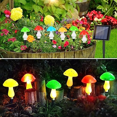 • Ulepszone solarne światła grzybowe – urocze dekoracyjne światła grzybowe są wyposażone w 8 trybów oświetlenia: kombinacja, fale, sekwencja, powolne przyciemnianie, migotanie/miganie, światło ciągłe. Czarujący mały kształt grzyba nada Twojemu ogrodowi niepowtarzalny charakter.