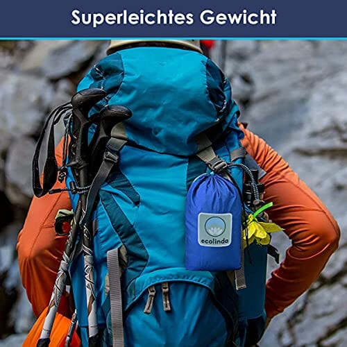 ecolinda ️ Ultralekki hamak klasy premium, 2 osoby, udźwig 225 kg, 305 x 200 cm, szybkoschnący nylon, 2 karabińczyki premium, 2 nylonowe pętelki, kemping, do ogrodu i wewnątrz