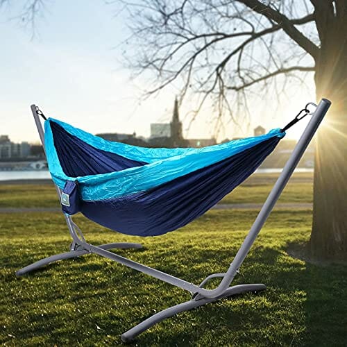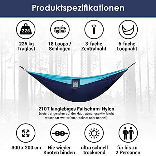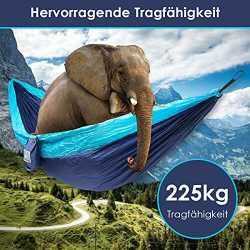 - Unsere Hängematten sind aus hochwertigem, strapazierfähigem 210T Fallschirm-Nylon gefertigt (die gleiche Art, die von Fallschirmspringern verwendet wird). Dieses extra weiche und dennoch super starke Material bietet Dir ein komfortables und entspannendes Erlebnis.