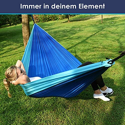 - Entspanne Dich sofort, mit super schnellem und einfachem Aufbau unter 60 Sekunden: Baumgurte und Karabiner sind im Lieferumfang enthalten, somit ist der Aufbau dieser Hängematte ein Kinderspiel. Keine Knotenbindung. Die Hängemattengurte sind ca. 2,7 m lang und werden mit 5 separaten Schlaufen geliefert, sodass Sie Ihre Hängematte auf die perfekte Höhe Komfort anpassen können. Du kannst sie an allen Stabilen, wie zum Beispiel Bäumen befestigen, und in nur einer Minute entspannen.