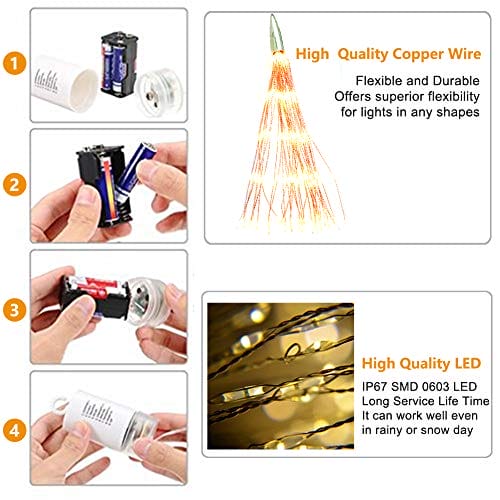 • 【Kreatywne i szerokie zastosowanie】 Łańcuch świetlny DIY w dowolnym kształcie, który możesz sobie wyobrazić, jak bukiet, fajerwerki, spray itd. Efekt wysokiej jasności, błyszczący efekt, idealny do dekoracji przyjęć urodzinowych, świąt, Nowego Roku, sypialni, salonu, trawnika, ogrodu, werandy, drzwi, na zewnątrz i wewnątrz.