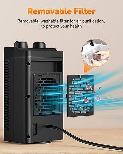 4. Bezpieczny i energooszczędny: Cnkeeo termowentylator został zaprojektowany z myślą o bezpieczeństwie użytkowania. Posiada funkcję automatycznego wyłączania w przypadku przegrzania lub przewrócenia. Ponadto, dzięki zastosowaniu energooszczędnych rozwiązań, termowentylator zużywa minimalną ilość energii, co przekłada się na niższe rachunki za prąd.