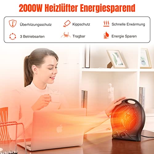 3. Szybkie i skuteczne ogrzewanie: Dzięki mocy 2000 W, termowentylator zapewnia szybkie i skuteczne ogrzewanie pomieszczenia. Bez względu na to, czy jest to mały pokój czy większe pomieszczenie, urządzenie szybko rozprowadza ciepło, zapewniając przyjemną temperaturę w krótkim czasie.