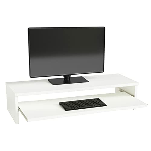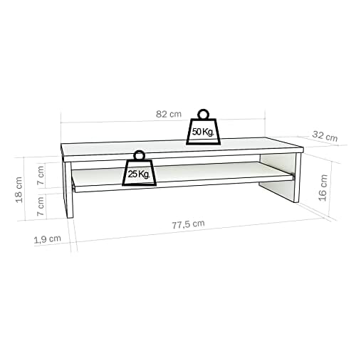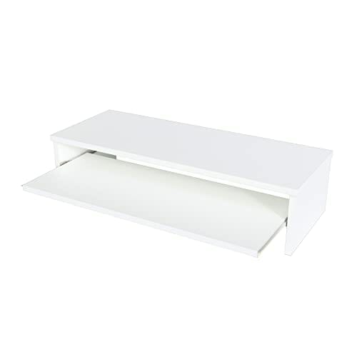 Henor, Stojak na monitor z wyjmowaną półką, z podwyższeniem ekranu TV, z drewna FSC®, 82 x 32 x 18 cm, udźwig 50 kg, biały