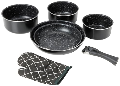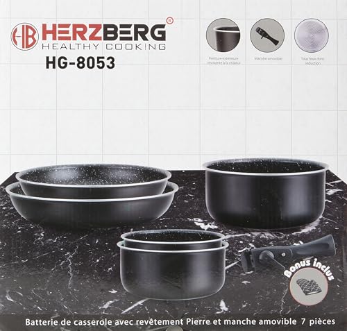 ✅ Herzberg Bateria kuchenna: Herzberg Bateria kuchenna – wiele kół indukcyjnych – zestaw Papon i Poele wszystkie światła – zestaw kuchenny składający się z 7 elementów z patelniami i patelniami z marmurową powłoką i zdejmowanym uchwytem HG 8053 BLK