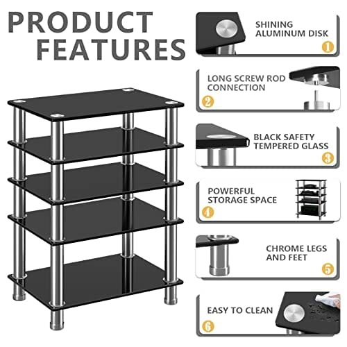 HiFi Rack Glas 5 Ebenen HiFi Regal 600x400x800mm Phono Rack Plattenspieler Ständer TV Regal Möbel Edelstahl Gehärtetes Glas